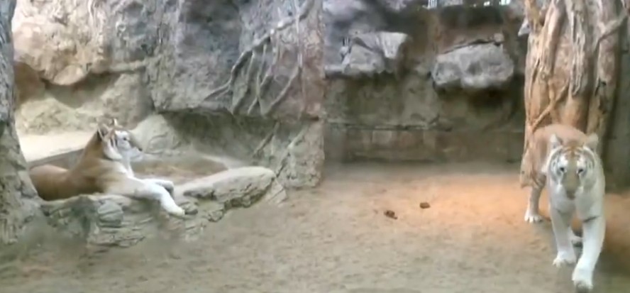 Tigres-de-bengala de coloração incomum,como as irmãs Ava e Luna,ambas com 3 anos,só são encontrados em centros de reprodução ou zoológicos,e não na natureza,explicou Patcharee Pipatwongchai,treinador de tigres no Night Safari de Chiang Mai. As irmãs gêmeas,nascidas em cativeiro,fizeram sua estreia no zoológico em junho e se alcançaram um sucesso após aparecerem nas plataformas de mídia social da instituição.