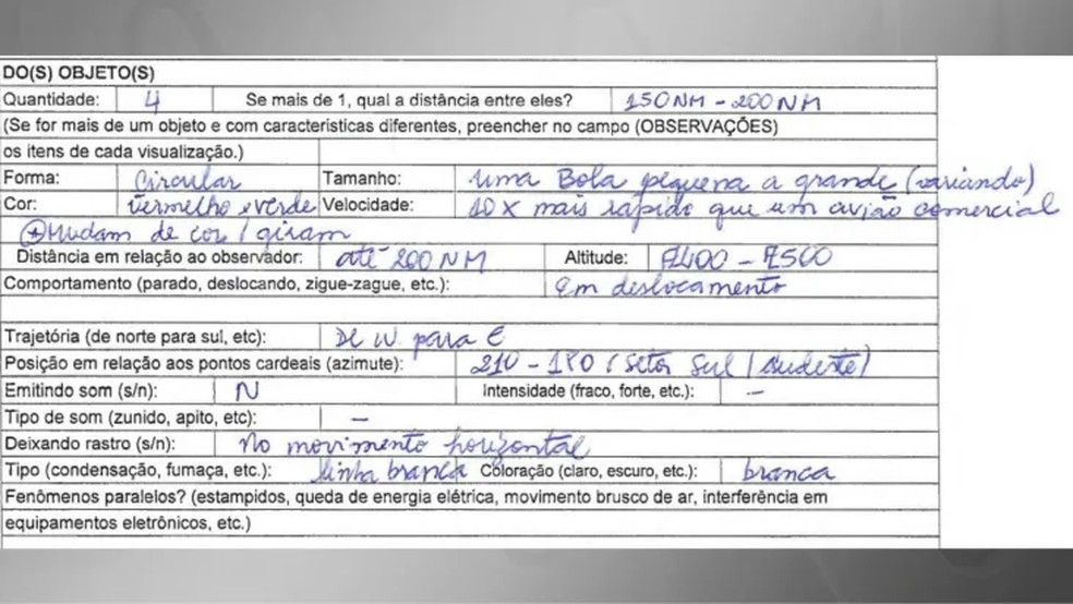 O Arquivo Nacional trouxe a público cerca de 30 documentos com relatos de pilotos brasileiros sobre o avistamento de Óvnis (objetos voadores não identificados) no espaço aéreo nacional. Todos os informes foram feitos no ano passado aos Centros Integrado de Defesa Aérea e Controle de Tráfego Aéreo (Cindactas),órgão vinculado à Força Aérea Brasileira (FAB).