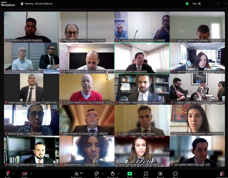 Videoconferência do depoimento do réu colaborador Ronnie Lessa no STF — Foto: Reprodução