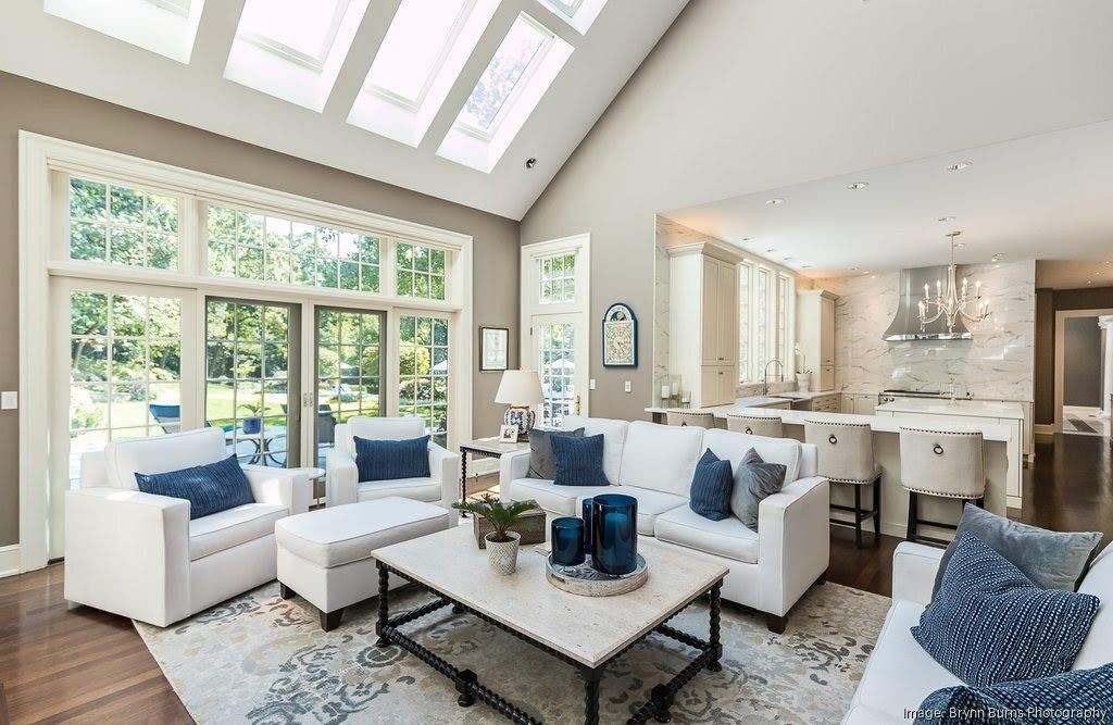 Sala de estar de mansão de Travis Kelce,namorado de Taylor Swift — Foto: Brynn Burns Photography/Homes of the Rich
