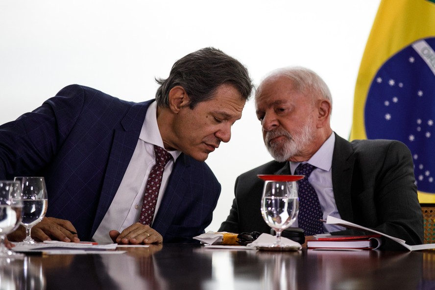 Fernando Haddad,ministro da Fazenda,ao lado do presidente Lula — Foto: Brenno Carvalho / Agência O Globo