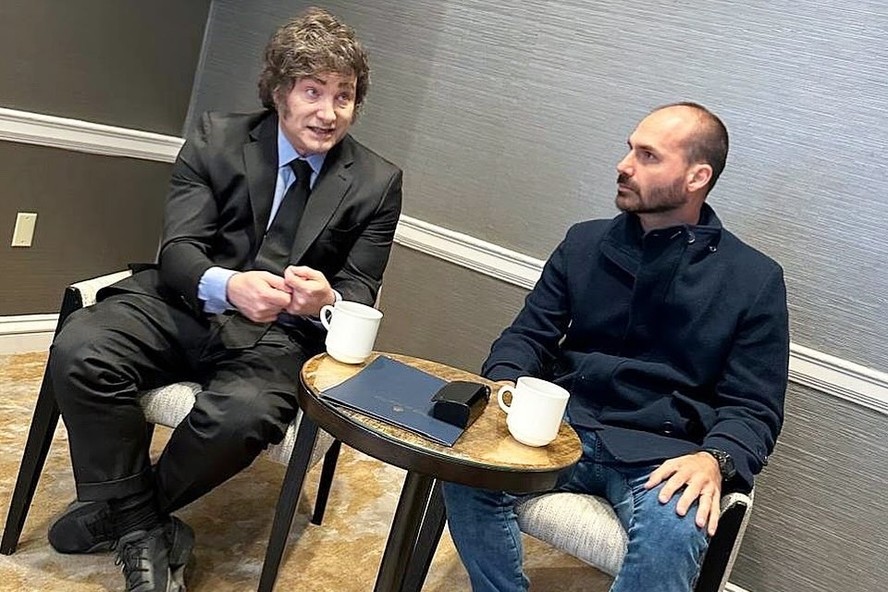 O deputado federal Eduardo Bolsonaro (PL-SP) aproveitou a passagem pelos Estados Unidos,onde acompanha nesta segunda-feira a posse de Donald Trump,para encontrar com o presidente argentino Javier Milei.