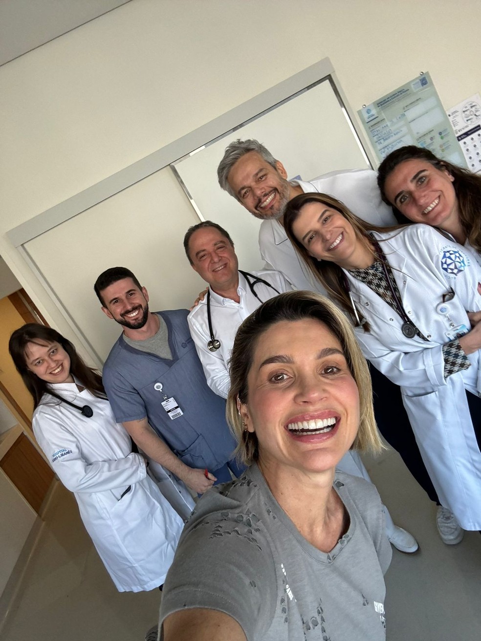 Otaviano junto com a mulher,a atriz Flávia Alessandra,e a equipe do dr. Roberto Kalil,que realizou a cirurgia no apresentador — Foto: Arquivo Pessoal