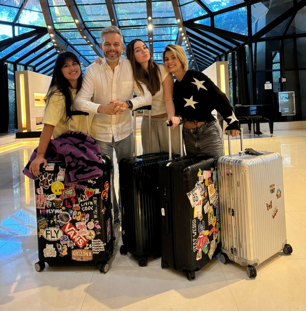 Otaviano no hospital junto com a família: a esposa e atriz Flávia Alessandra,e as filhas Giulia e Olívia — Foto: Arquivo Pessoal