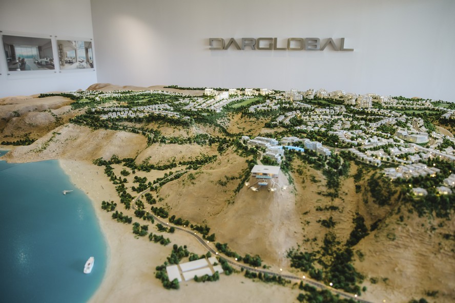 Maquete do Trump International Golf Club Oman,que está sendo construído no sultanato — Foto: Andrea DiCenzo/The New York Times