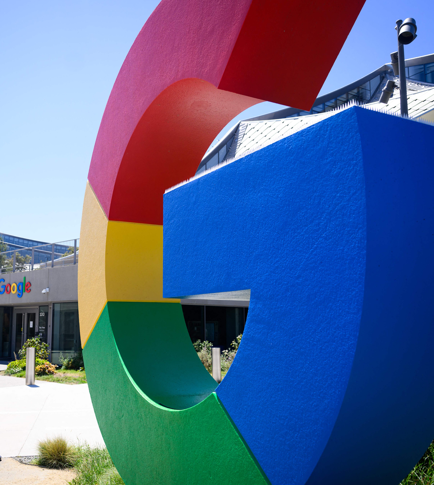 Logo gigante do Google em sua sede em Mountain View,na Califórnia — Foto: Josh Edelson/AFP RESUMOSem tempo? Ferramenta de IA resume para você