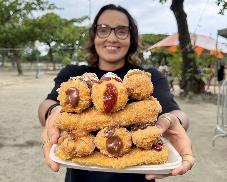 A torre de churros da Feira do Podrão — Foto: Reprodução @ondecomernorio