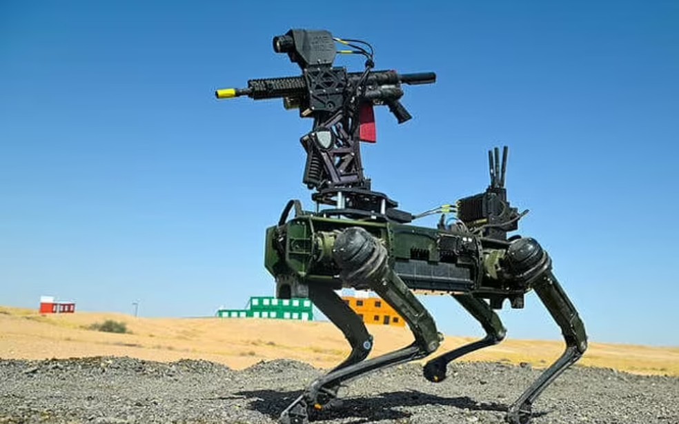 A cada novo conflito militar o mundo é surpreendido com novas tecnologias que podem alterar os rumos de uma guerra. Armas laser,microchips,inteligência artificial (IA),realidade virtual e aumentada (RV e RA),drones e robôs são algumas das que preenchem essa lista. Na China,a mais recente novidade postada nas redes sociais é o combate entre um cão robótico e um drone aéreo,em que os dois disparam fogos de artifício um contra o outro.