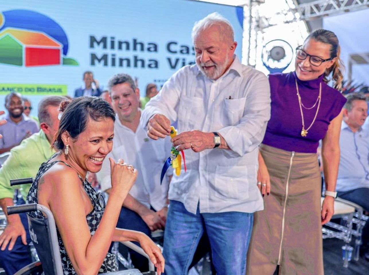 Presidente Lula em Rondonópolis,onde entregou chaves de unidades do Minha Casa,Minha Vida. — Foto: Ricardo Stucket / Lula Twitter
