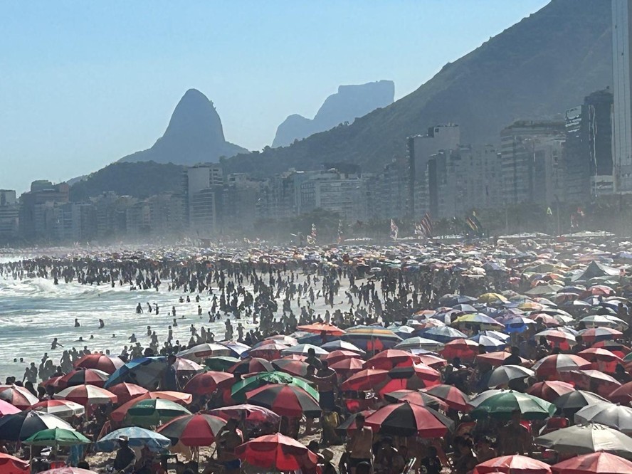 Praia do Leme,na Zona Sul do Rio,lotada neste domingo — Foto: Gabriel de Paiva RESUMOSem tempo? Ferramenta de IA resume para você