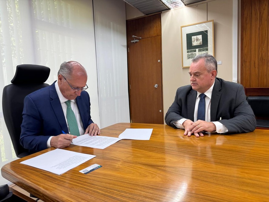 Lucio Capeletto,presidente da ABBT,que representa 21 empresas de vale-refeição e vale-alimentação,leva duas medidas para o vice-presidente,Geraldo Alckmin — Foto: Divulgação