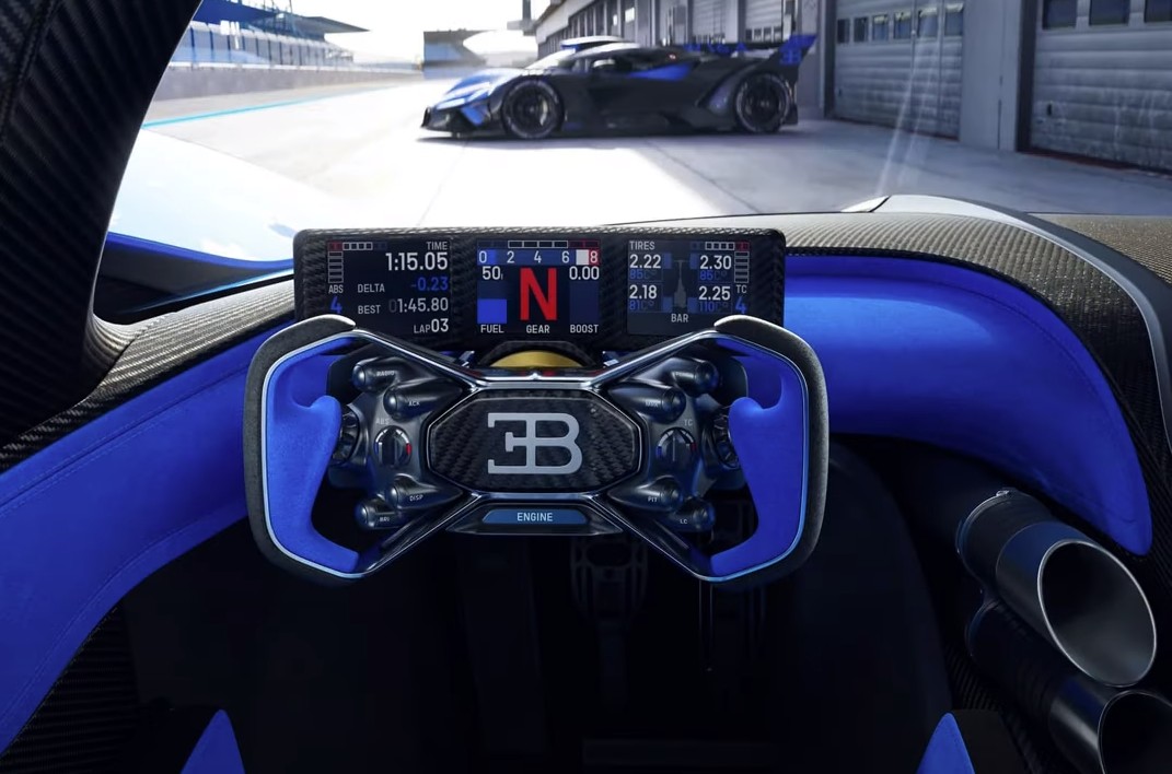 Ao contrário dos demais veículos da Bugatti,o Bolide apresenta um interior inspirado nos carros de corrida — Foto: Reprodução / Youtube