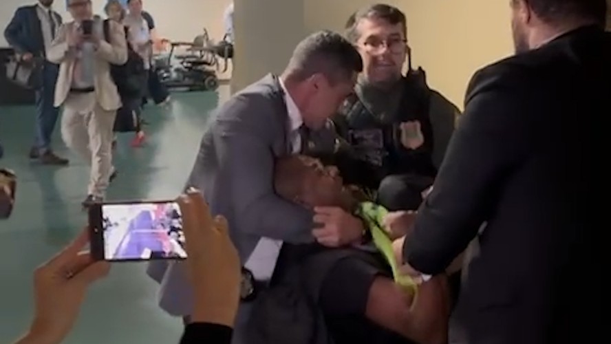 Luiz dos Santos foi retirado do plenário de uma das comissões por quatro seguranças. Um deles deu um “mata-leão”,após o manifestante ter reagido à abordagem com um soco.