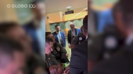Manifestante é retirado de plenário da Câmara — Foto: Victoria Abel / Reprodução RESUMOSem tempo? Ferramenta de IA resume para você
