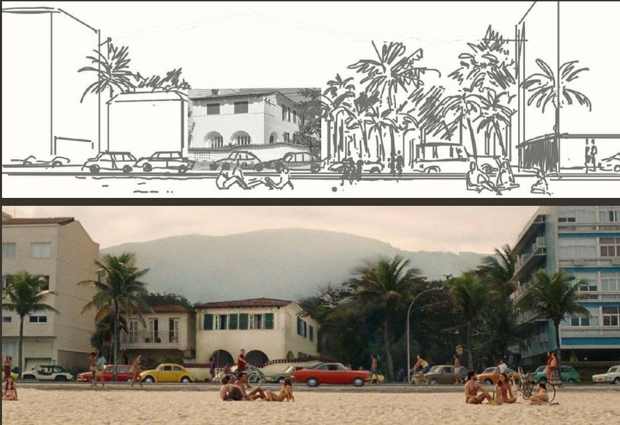 Imagem do Leblon da família Paiva e sua versão em 'Ainda estou aqui' — Foto: Reprodução