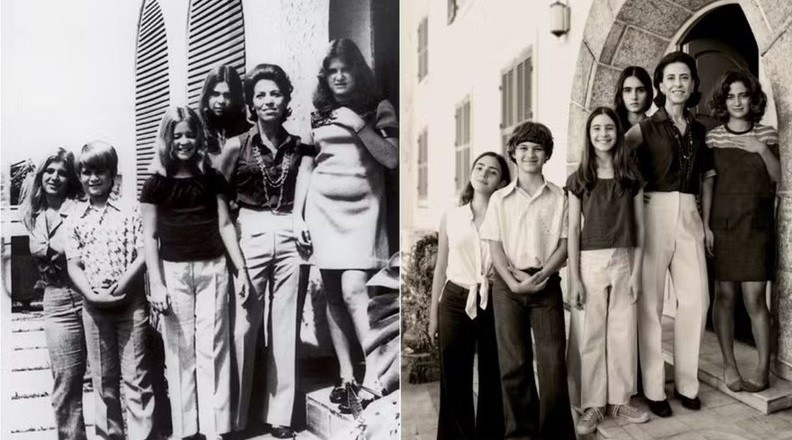 Família Paiva,à esquerda,e o elenco que interpretou a família no filme 'Ainda estou aqui' — Foto: Reprodução