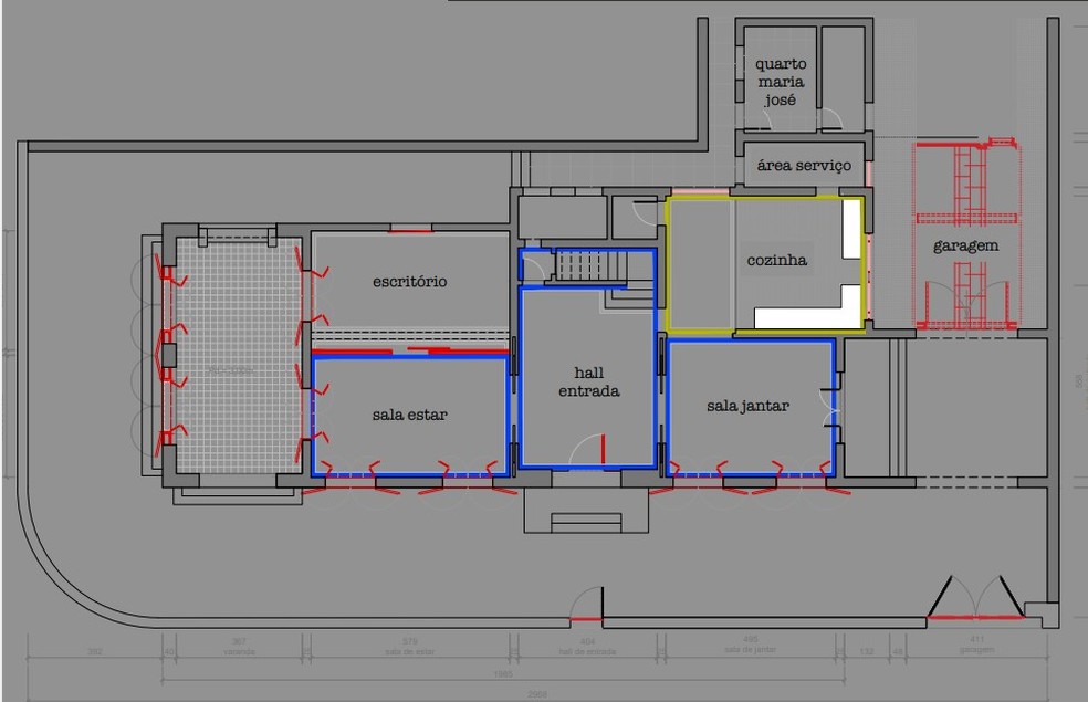 Planta baixa da casa usada para "Ainda estou aqui" — Foto: Reprodução