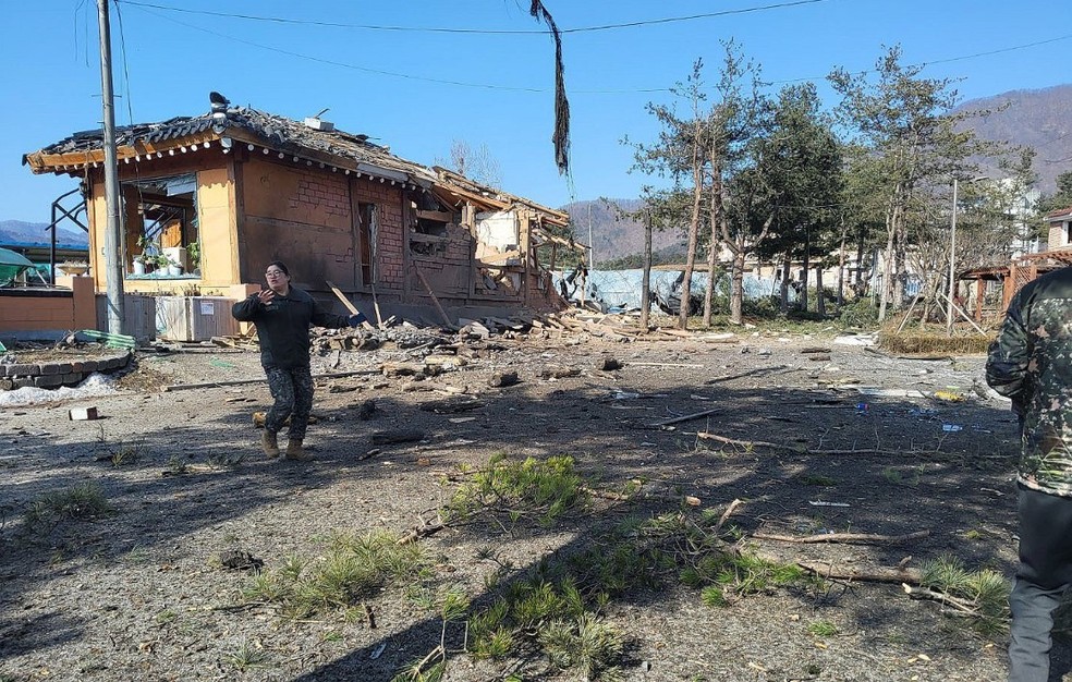 Avião militar erra o alvo e acerta cidade na Coreia do Sul — Foto: Reprodução / redes sociais
