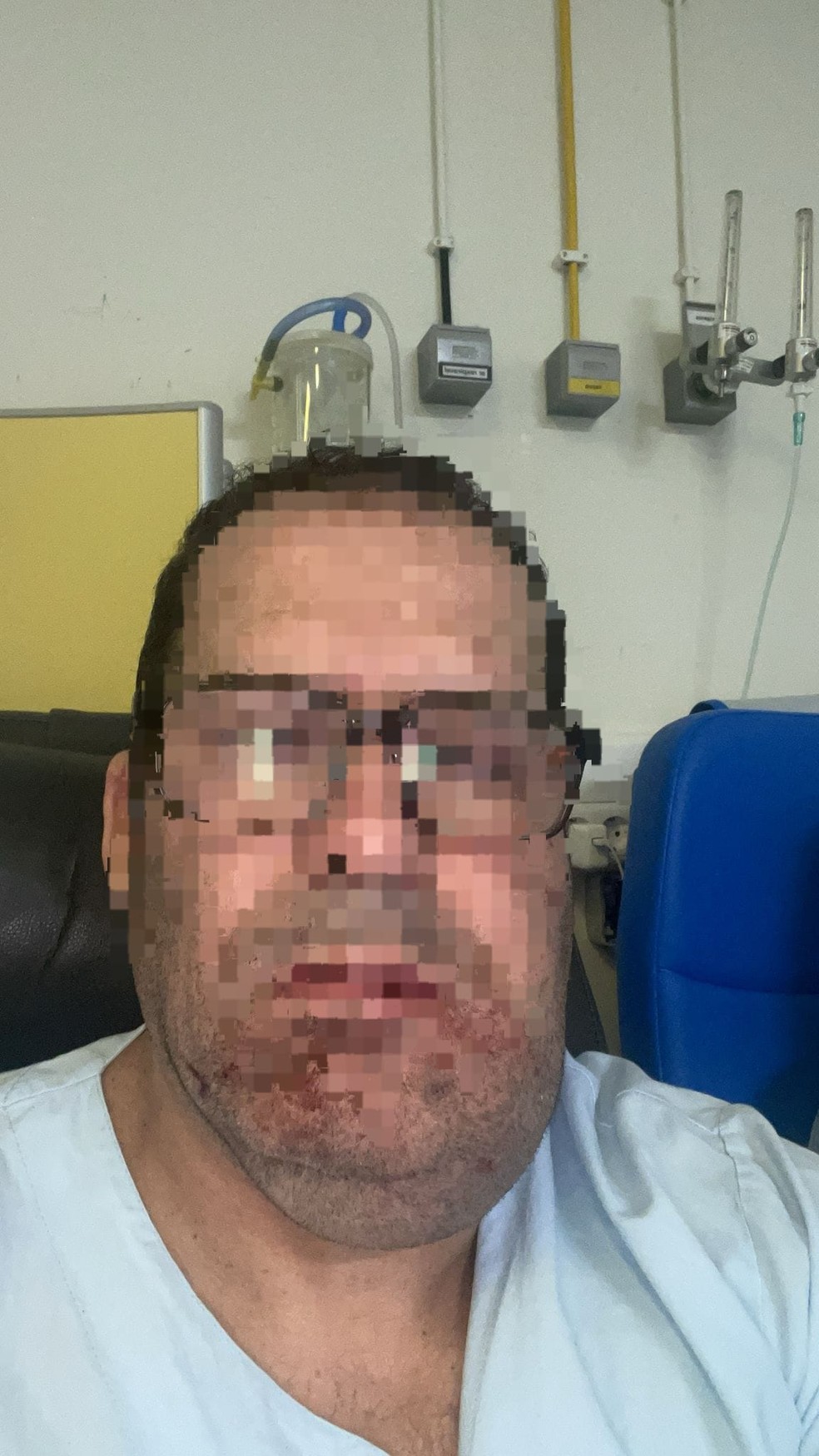 Y. no hospital em Lisboa: duas placas de titânio no maxilar quebrado — Foto: Divulgação para Portugal Giro