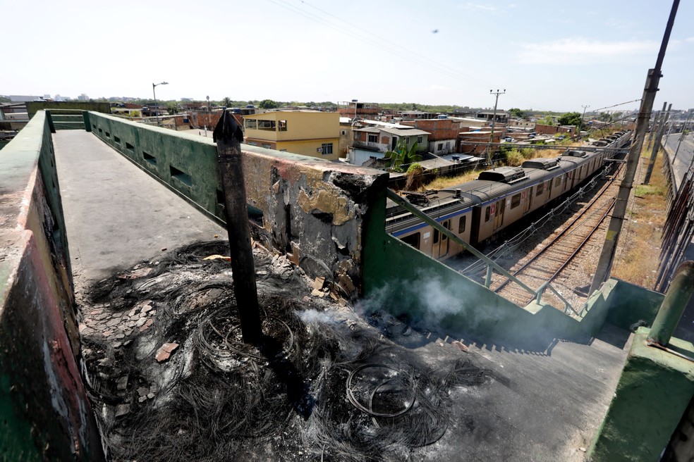 Durante operação policial em Parada de Lucas e Vigário Geral,bandidos colocaram fogo em passarela para atrapalhar ação policial — Foto: Gabriel de Paiva / Agência O Globo / 11-03-2025
