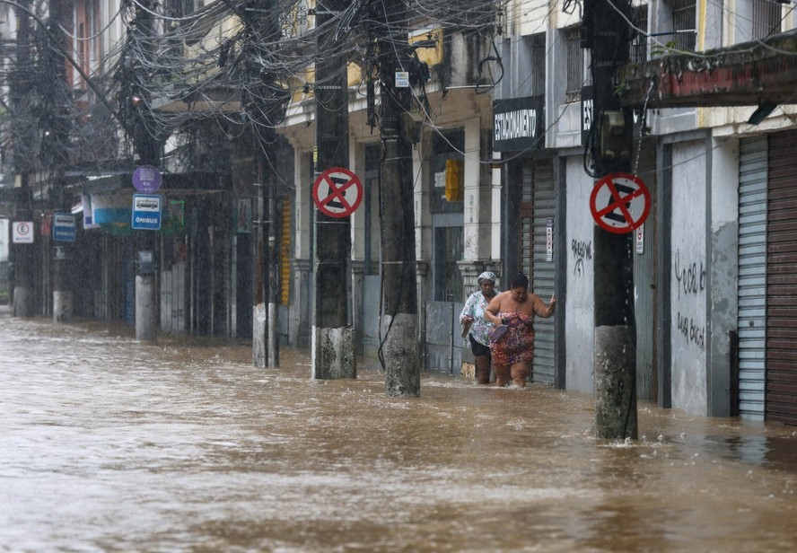 Rua alagada em Petrópolis,na Região Serrana do Rio — Foto: Márcia Foletto / Agência O Globo/05/04/2025