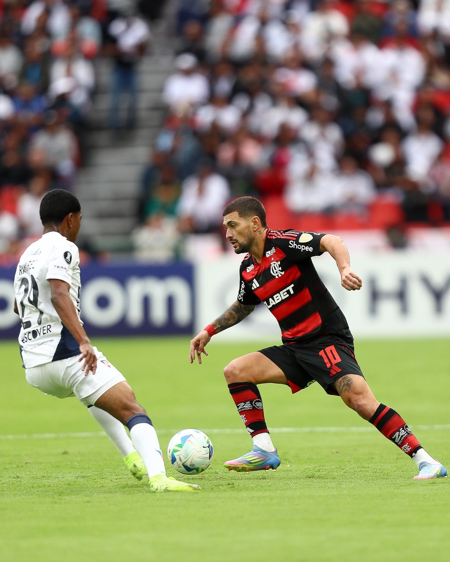 Arrascaeta tenta passar pelo adversário — Foto: Gilvan de Souza/Flamengo O Flamengo não conseguiu superar a LDU e a altitude e ficou no 0 a 0,nesta terça-feira,em Quito,no Equador. Com o ponto ma