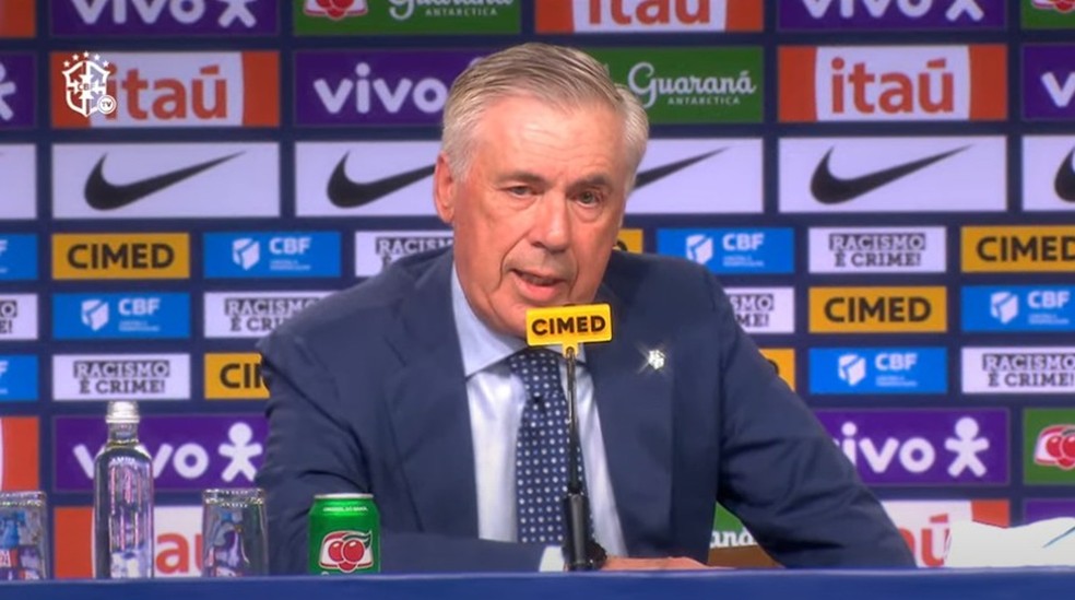 Ancelotti durante convocação da seleção brasileira — Foto: Reçprodução/CBF TV
