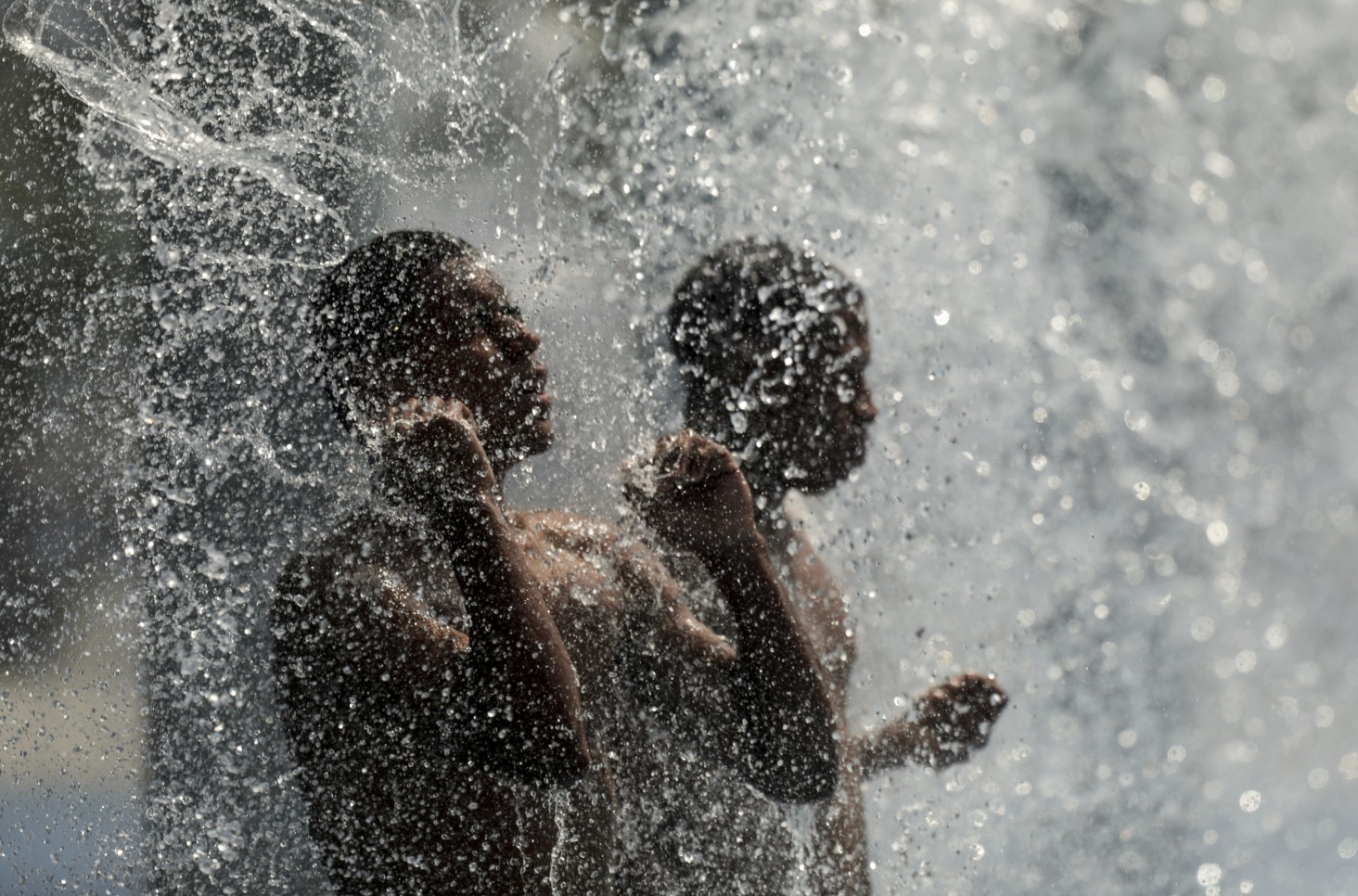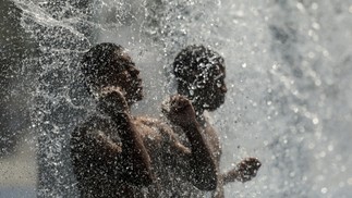 Refrescos nas águas do Parque Madureira,na Zona Norte do Rio. Segundo o Inmet,calor de 'grande perigo' deve se manter até domingo — Foto: Gabriel de Paiva / Agência O Globo