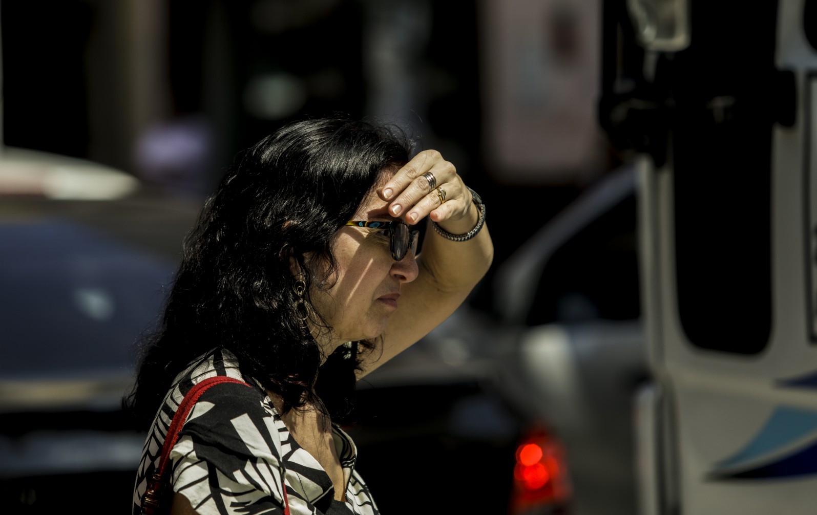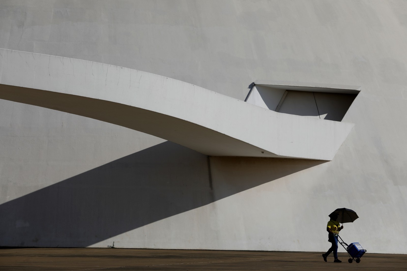 Vendedora ambulante de água em frente ao Museu Nacional em Brasília se protege do sol com uma sombrinha — Foto: Cristiano Mariz / Agência O Globo