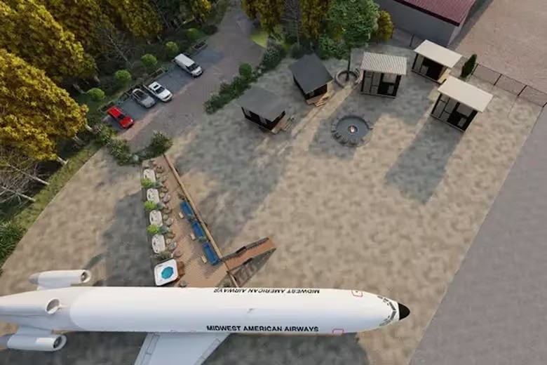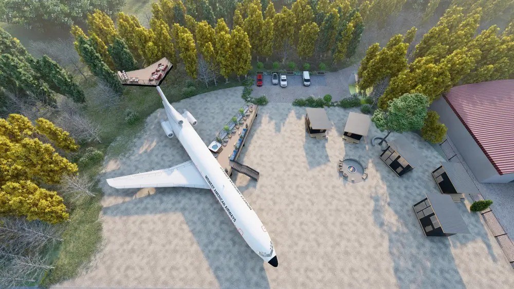 Hoje,ele prevê que o destino do Boeing 727 seja um espaço reservado a casais,oferecendo uma entrada privativa e um amplo quarto — Foto: Divulgação