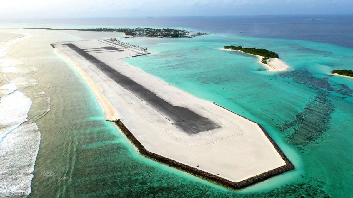 O Aeroporto de Hoarafushi,no Atol Haa Alif,foi inaugurado em 2020 e é um belo exemplo de aeroportos domésticos construídos em ilhas inabitadas das MaldivasReprodução