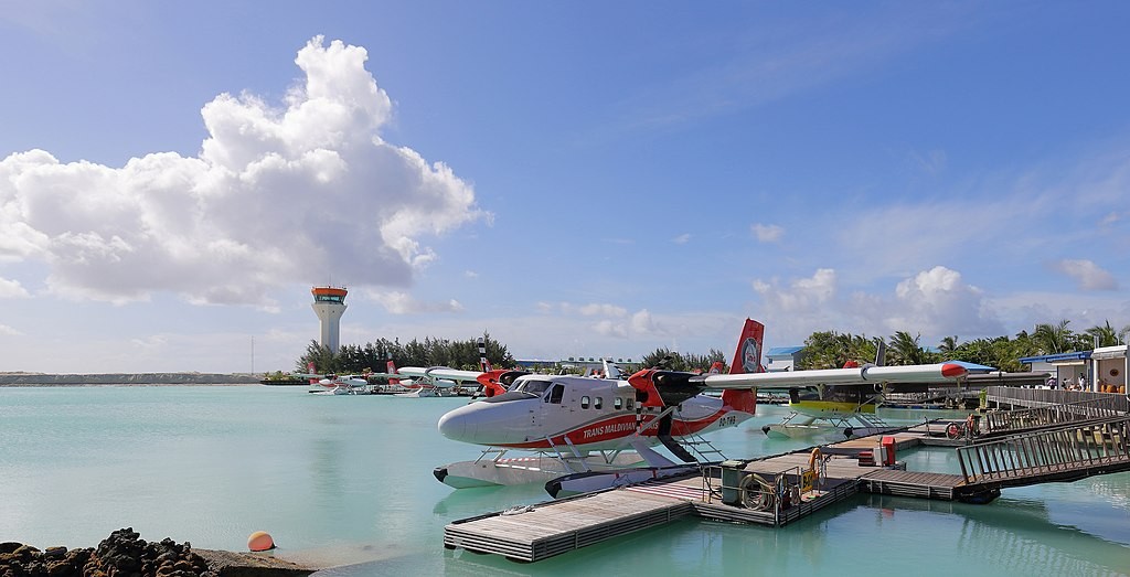 Aeronave da Trans Maldivian no terminal de hidroaviões do aeroporto de Malé,capital das MaldivasReprodução