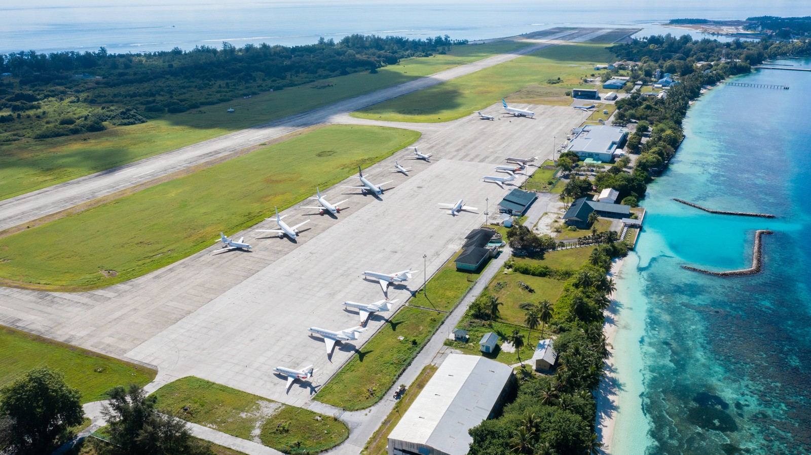 O Aeroporto Internacional de Gan,segundo maior das Ilhas Maldivas,também fica de frente para o marReprodução