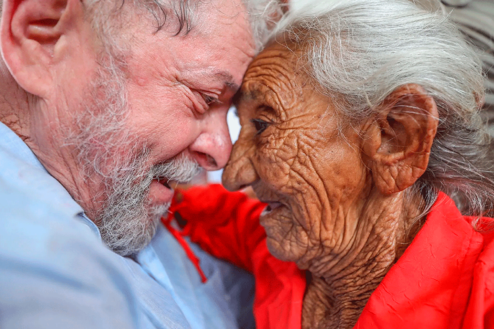 Lula e a eleitora dona Marilda,na Paraíba,em 2017. — Foto: Ricardo Stuckert