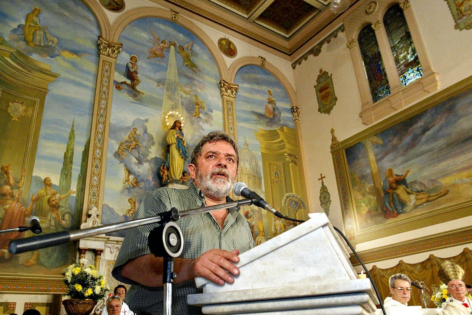 Lula faz pronunciamento durante missa pelo Dia do Trabalho em São Bernardo do Campo,em 2003. — Foto: RICARDO STUCKERT