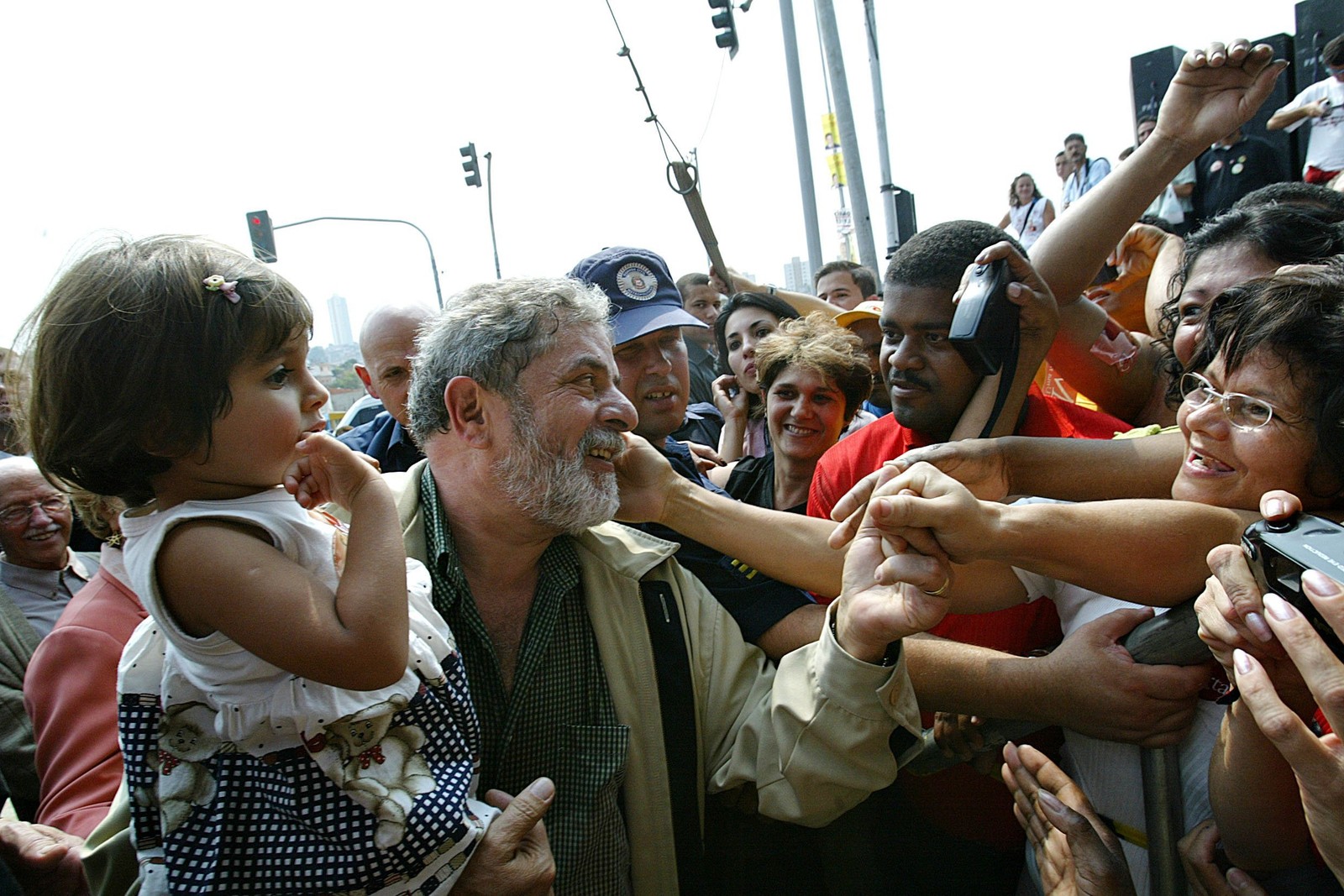 Lula da Silva cumprimenta funcionários da empresa Caterpillar Brasil,em Piracicaba,em agosto de 2004 — Foto: Ricardo Stuckert