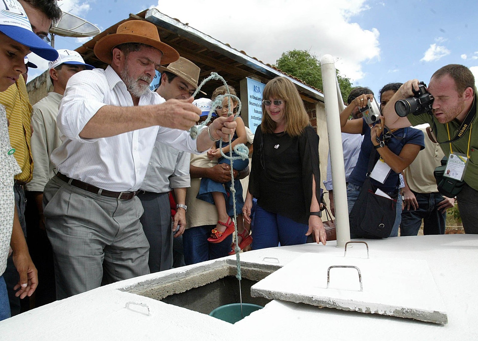 Lula retira água de uma cisterna na comemoração da instalação de um milhão de cisternas no semiárido,em Lagoa Seca (PB). — Foto: Ricardo Stuckert / 30.10.2003