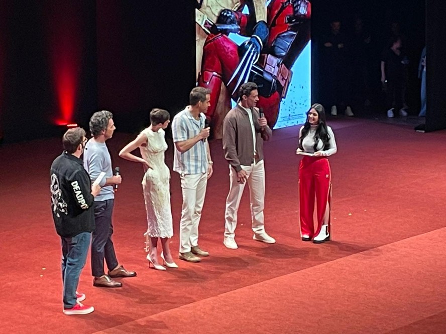 Acostumada a grandes espetáculos de música,dança e teatro,a Cidade das Artes,na Barra da Tijuca,no Rio,foi palco de um encontro de super-heróis nesta segunda-feira. O local foi escolhido para receber um evento para fãs de “Deadpool & Wolverine”,com a presença dos atores Ryan Reynolds,Hugh Jackman e Emma Corrin e do diretor Shawn Levy.
