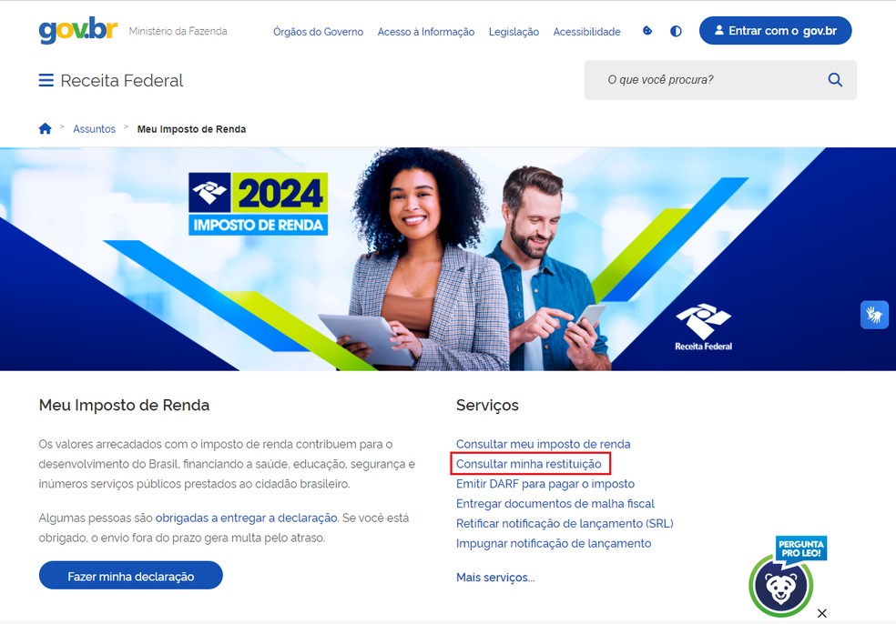 Como consultar restituição do IR 2024 — Foto: Reprodução/Receita Federal