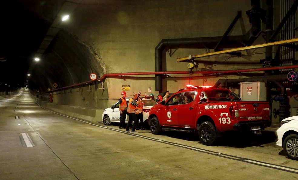 Dos seis túneis percorridos pelo GLOBO,apenas o Marcello Alencar,que liga a Zona Portuária ao Aterro do Flamengo,tem,aparentemente,equipamentos de combate a incêndio como extintores,hidrantes e mangueiras. Com mais de três mil metros de extensão e inaugurado em 2016,suas duas galerias contam ainda com telefones de emergência,como também está previsto na nota técnica do Corpo de Bombeiros. O documento estabelece ainda que haja um sistema de alto-falantes,para anunciar mensagens ao público,mas esse equipamento não foi identificado pela equipe do GLOBO.