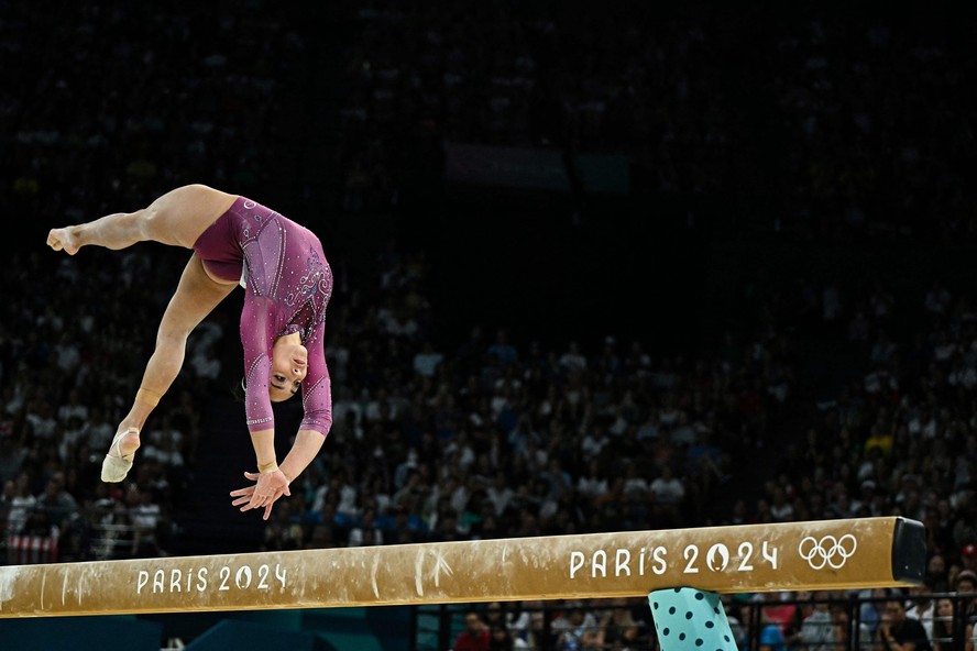 Julia Soares na trave em Paris — Foto: AFP RESUMOSem tempo? Ferramenta de IA resume para você GERADO EM: 14/08/2024 - 04:30