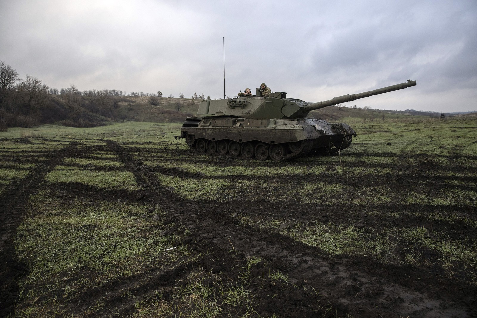 Soldados ucranianos testam tanque Leopard-1A5; equipamento foi doado por aliados ocidentais para a Ucrânia — Foto: David Guttenfelder/The New York Times