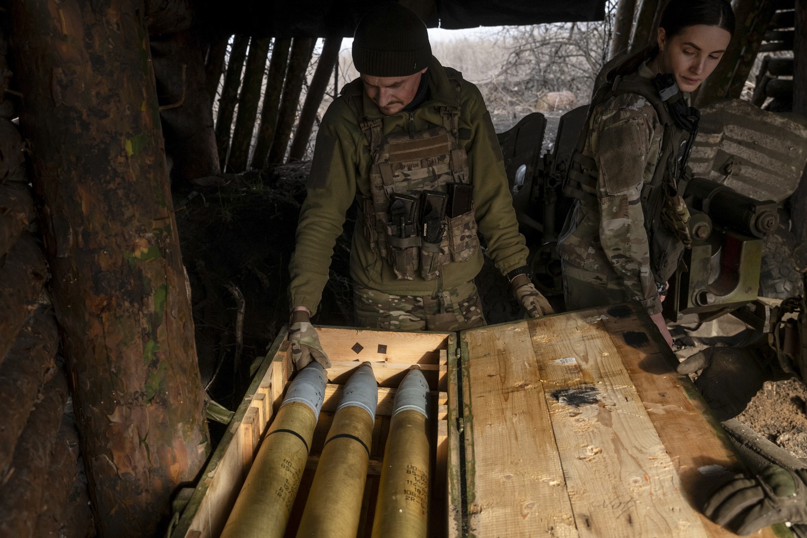 Soldados ucranianos preparam munição em abril de 2024,quando ajuda americana à Ucrânia estava paralisada — Foto: Nicole Tung/The New York Times