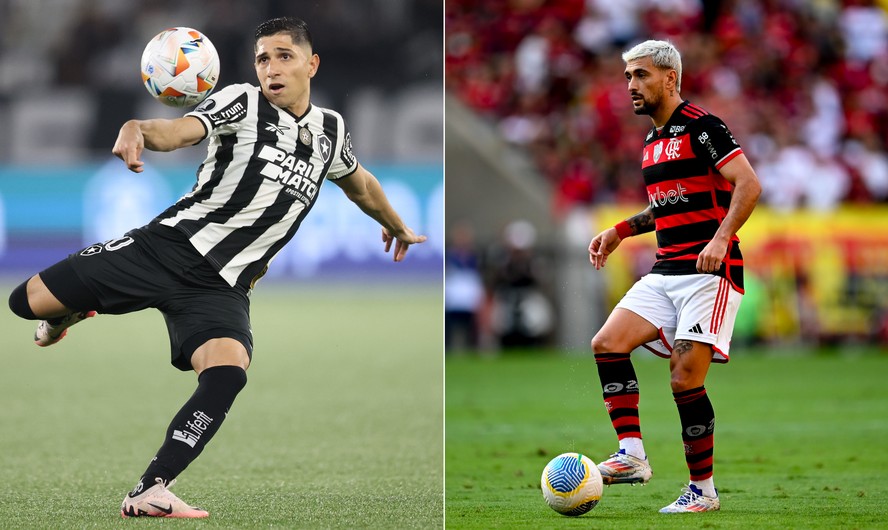 Savarino e Arrascaeta são candidatos a protagonistas no clássico entre Flamengo e Botafogo hoje — Foto: Vitor Silva/Botafogo; Marcelo Cortes/Flamengo