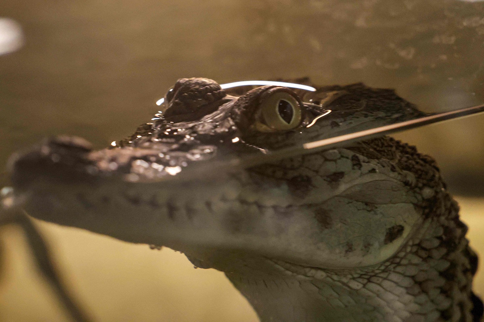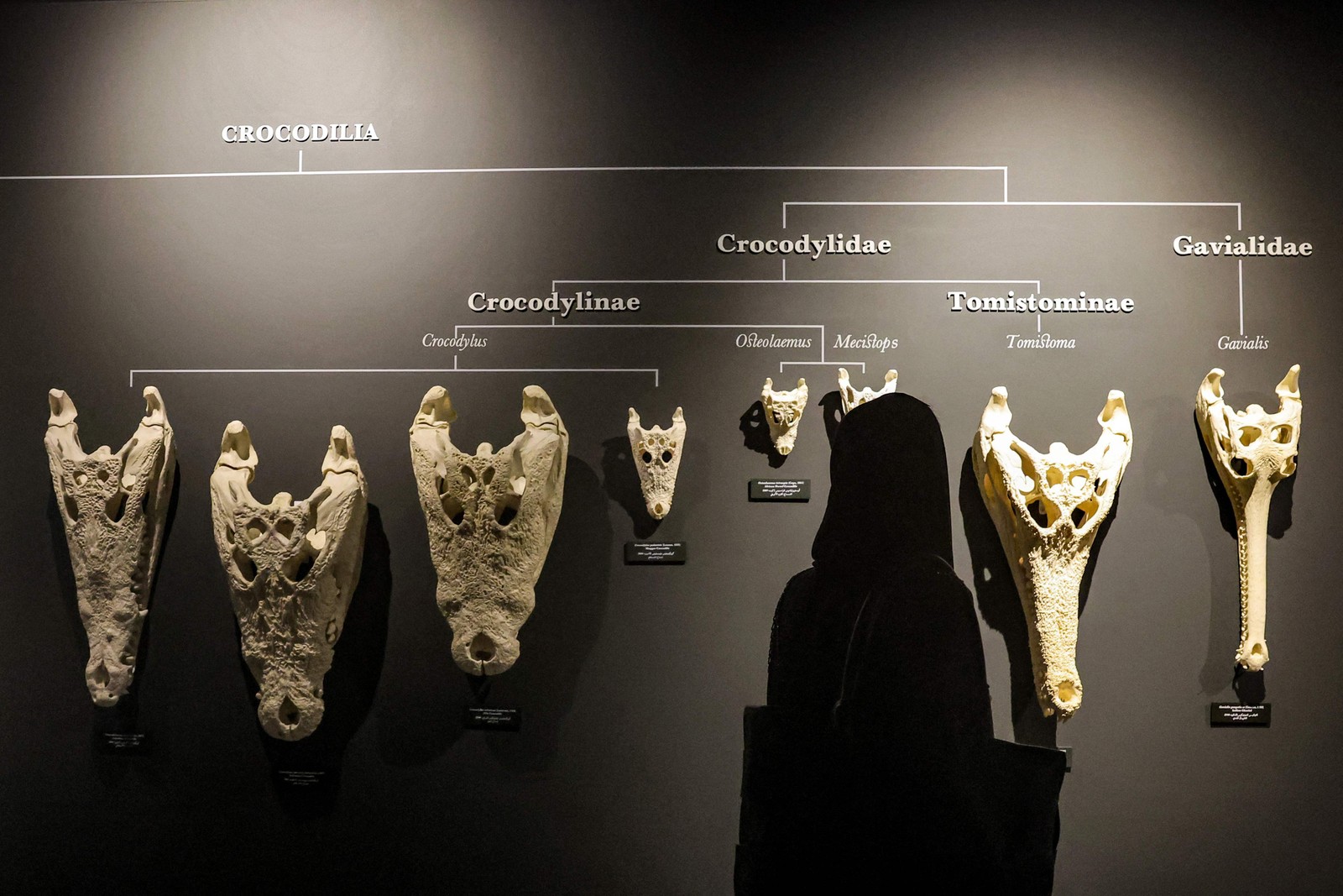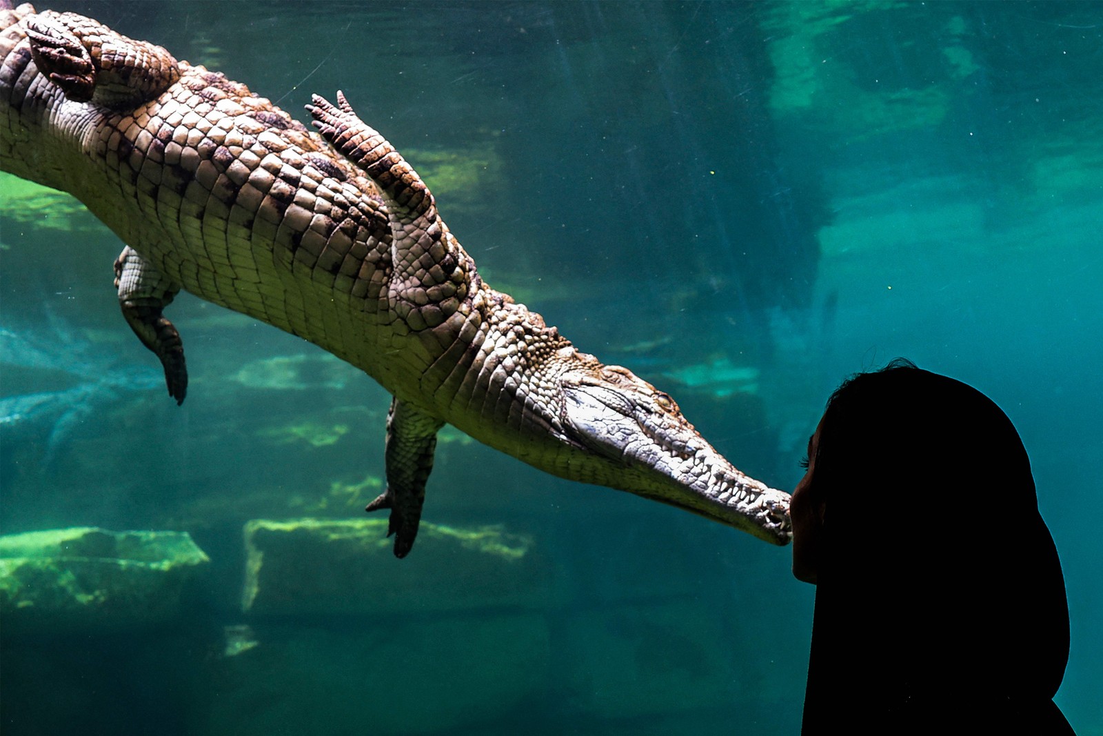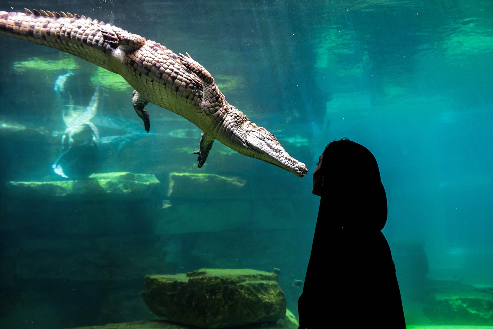 Visitante observa um crocodilo-do-nilo num aquário do Dubai Crocodile Park,que acabou de ser inaugurado nos Emirados Árabes Unidos — Foto: Giuseppe Cacace / AFP