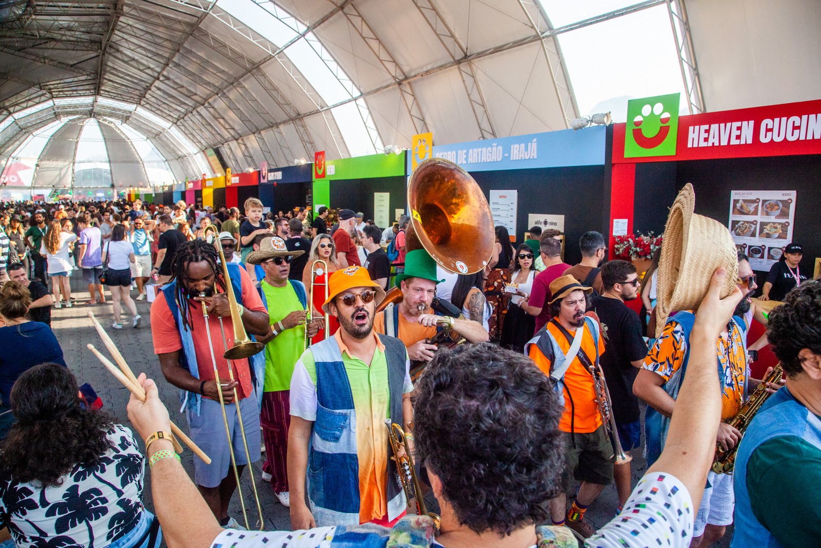 Grupos de fanfarra circulam em horários específicos do dia pelo Rio Gastronomia — Foto: Bruno Kaiuca