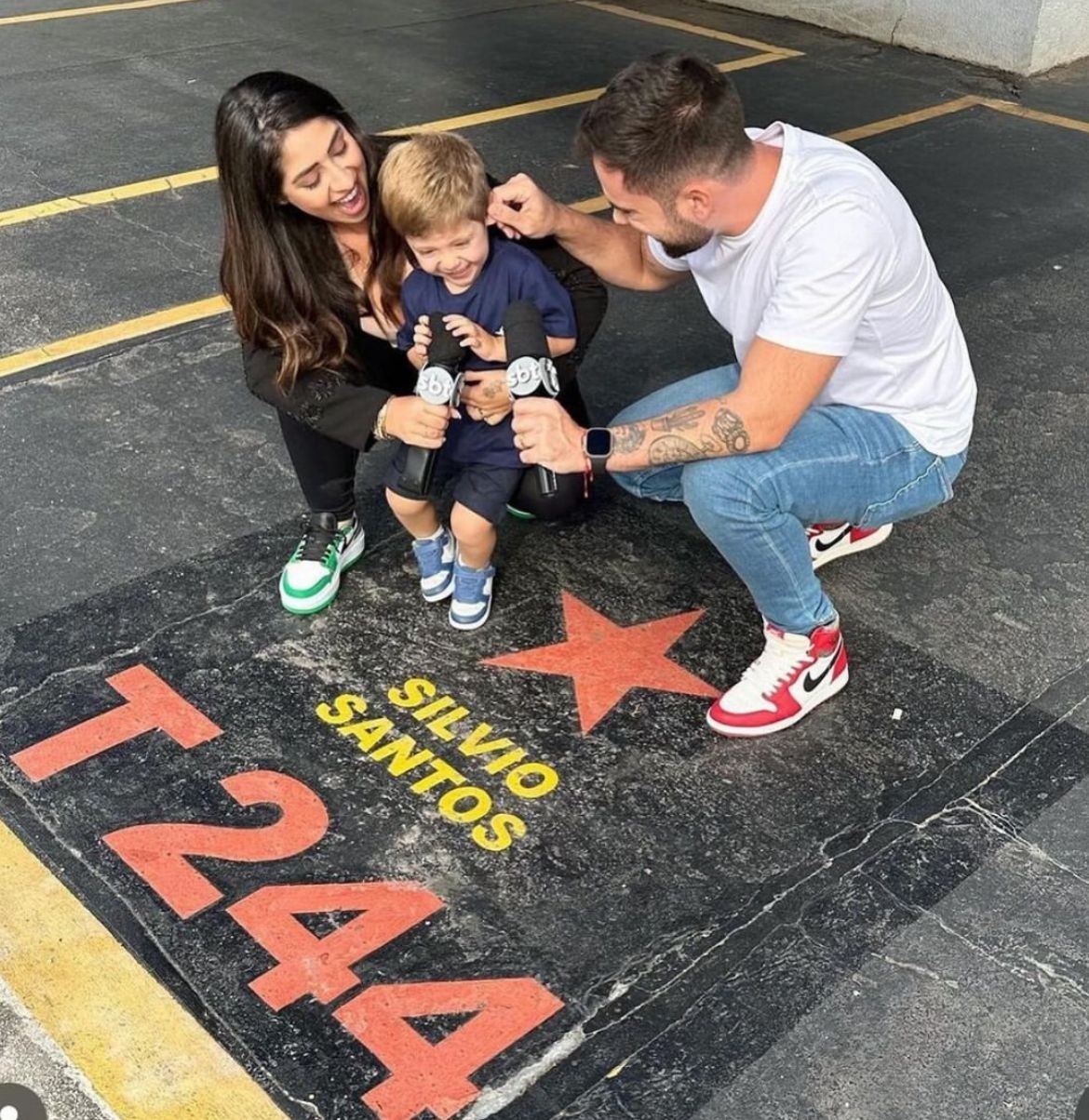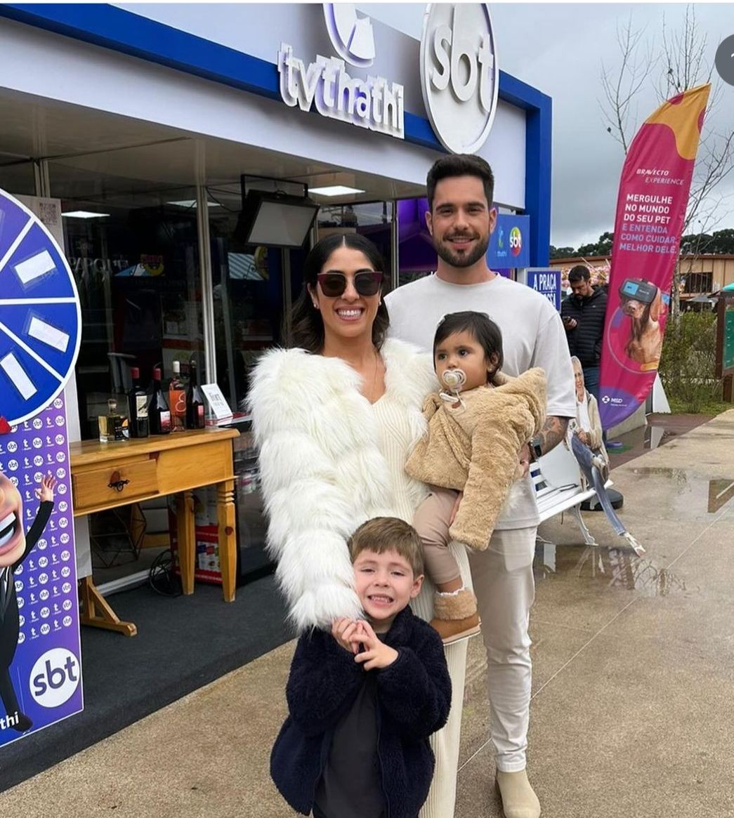 A sobrinha-neta de Silvio Santos Gabriela Abravanel com o marido e os filhos — Foto: Reprodução/Instagram