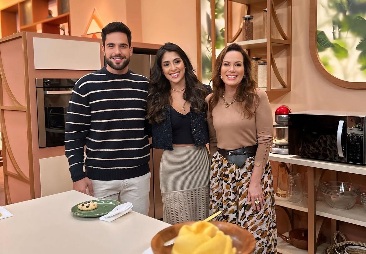 Gabriela Abravanel e o marido,e Guilherme Galazzo,apresentam o "Chega mais Vale". Eles posam ao lado de Regina Volpato — Foto: Reprodução/Instagram