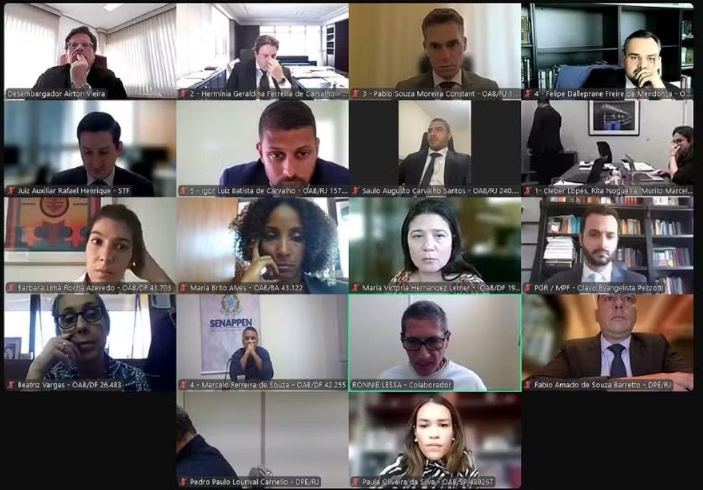 O réu colaborador Ronnie Lessa depõe na audiência do STF — Foto: Reprodução
