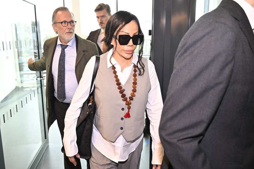 Ex-chefe da Think Pink,Bella Nilsson chega a tribunal para julgamento em Estocolmo — Foto: Henrik Montgomery/TT / TT NEWS AGENCY / AFP